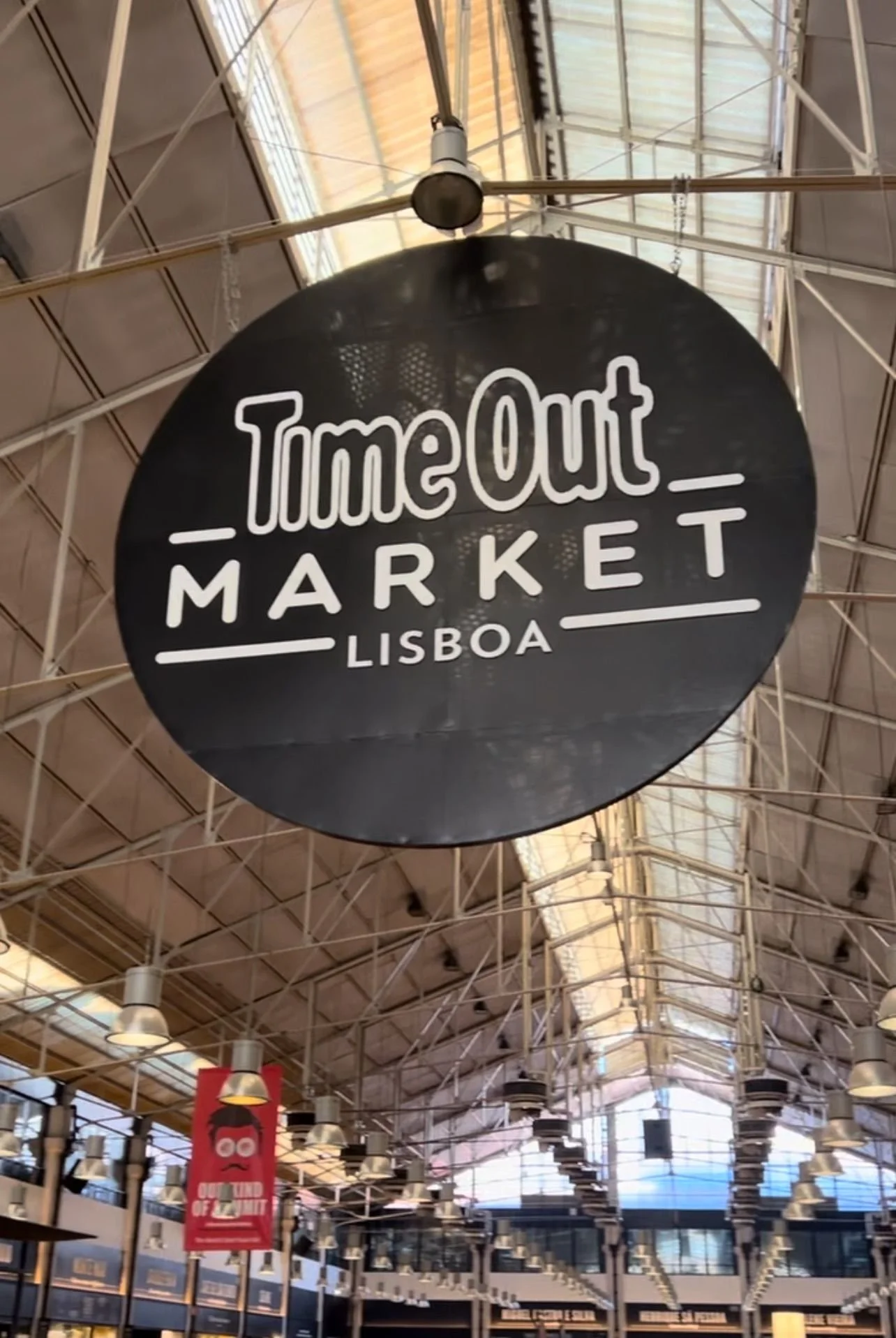 The Time Out Market in Lisbon is a vibrant and bustling food hall located in the historic Mercado da Ribeira near Cais do Sodré.
